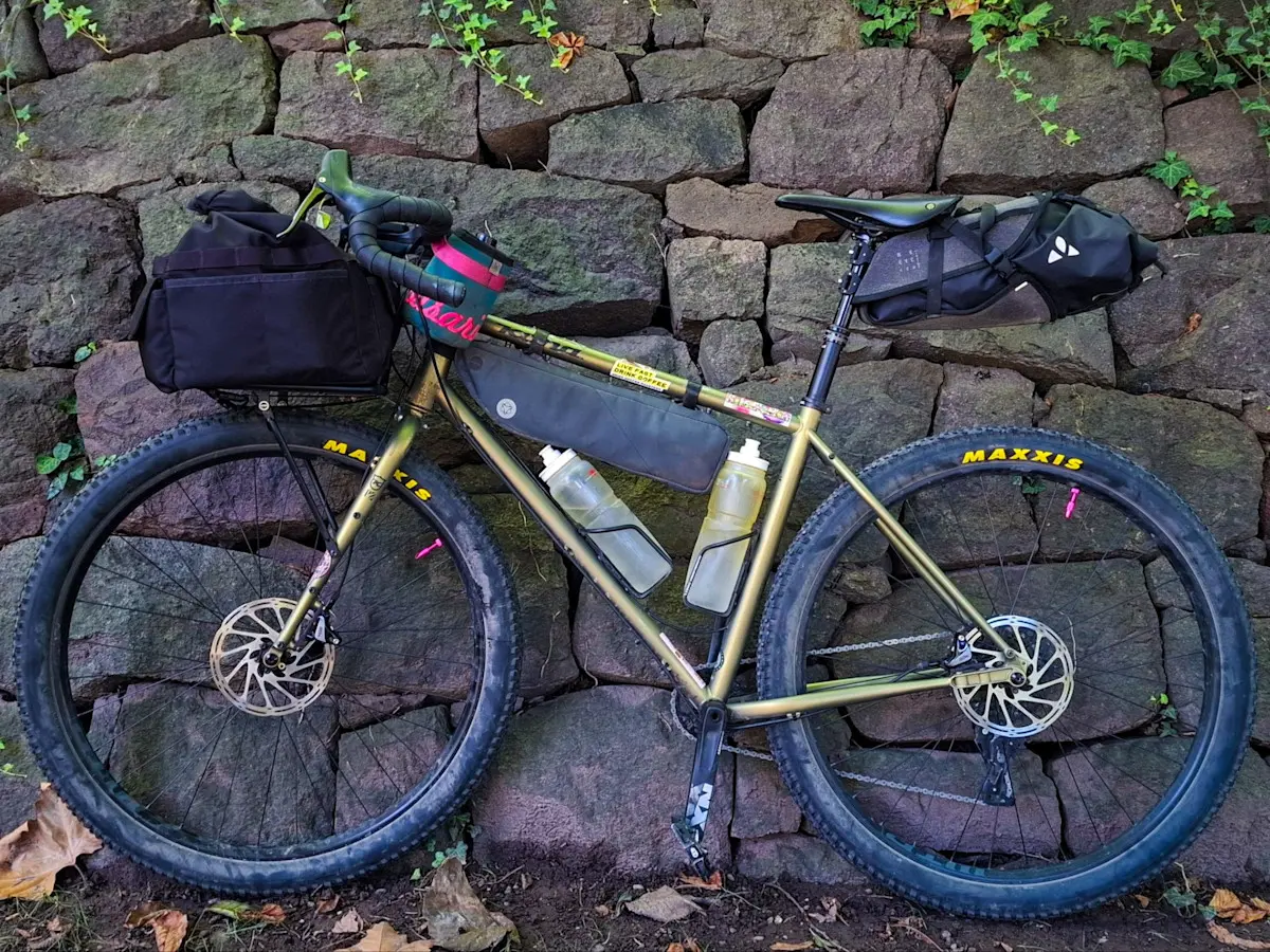 Key items of kit: Custom Bags from the lovely Rakaethe.Berlin. 2.6x29 Tires for comfort, dropper post for the fun.