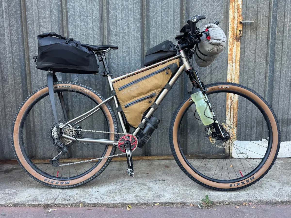 Key items of kit: 7R Bags - Handlebar bag Restrap - Custom made frame bag Decathlon - Top tube bag Revelate Design - Terrapine Saddlebag